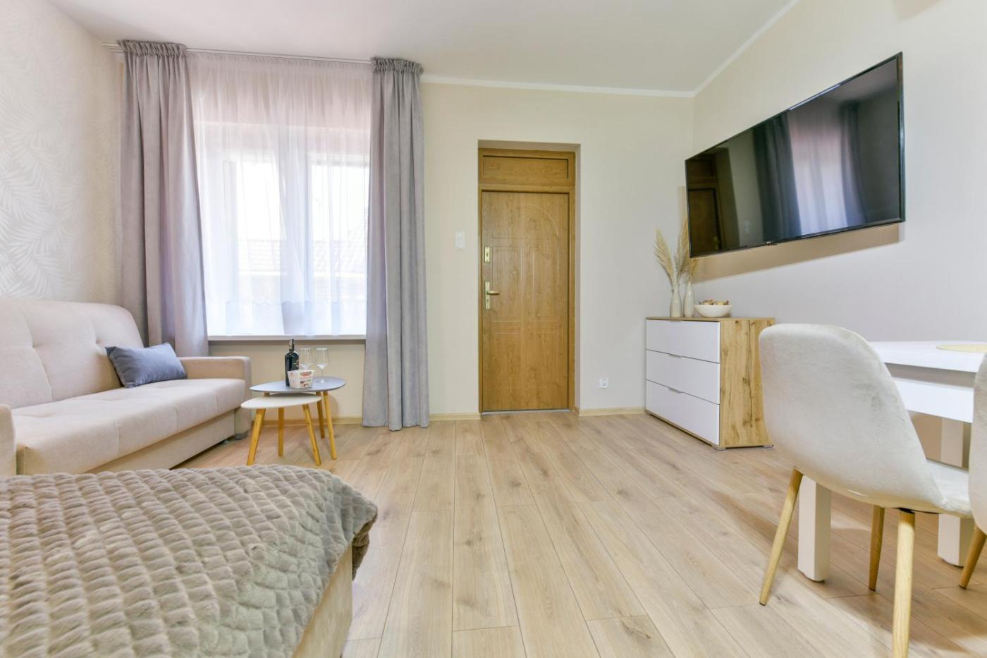Apartament z 1 sypialnią. Boasting a private entrance, this spacious apartment also includes 1 living room, 1 separate bedroom and 1 bathroom with a shower. Guests will find a stovetop, a refrigerator and kitchenware in the kitchen. The apartment also features a barbecue. This apartment has a tea and coffee maker, a dining area, a flat-screen TV with cable channels and a balcony. The unit has 4 beds. Apartament - 6 osobowy. Powierzchnia pokoju ok.: 64 mkw.