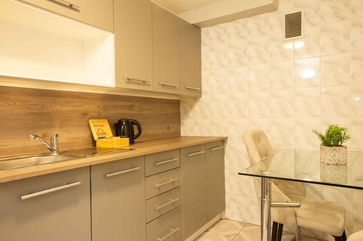 Obiekt Duży pokój z aneksem kuchennym i ogródkiem - blisko Butorowego Wierchu znajduje się w miejscowości Kościelisko i oferuje bezpłatne Wi-Fi oraz bezpłatny prywatny parking. Goście mogą podziwiać widok na ogród. Odległość ważnych miejsc od obiektu: Gubałówka – 4 km. Goście zatrzymujący się w apartamencie mają do dyspozycji kuchnię z pełnym wyposażeniem.