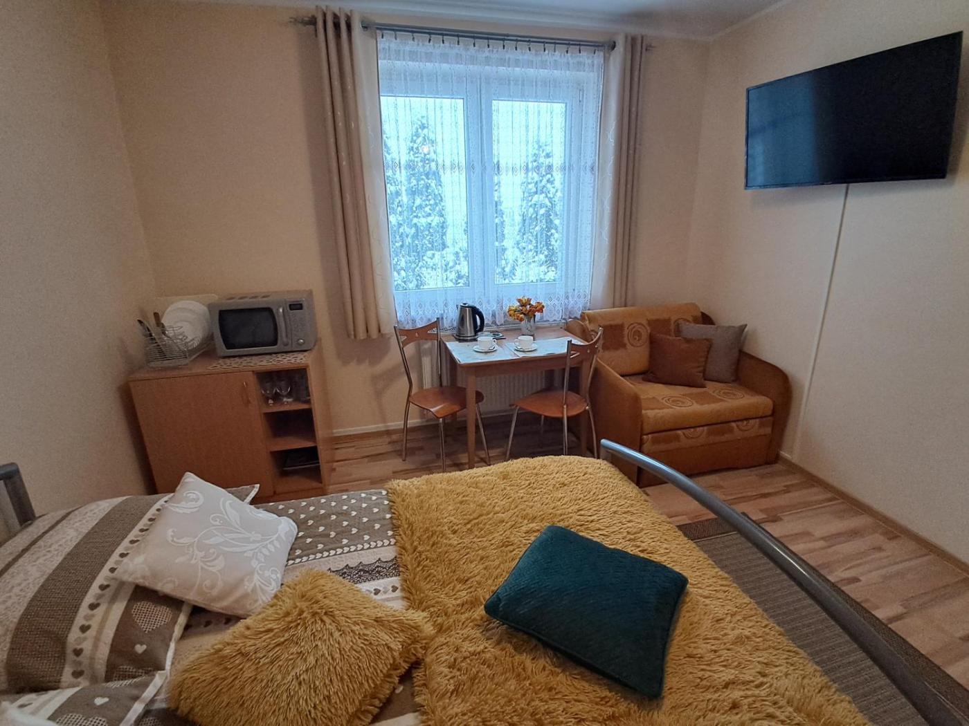 Pokój dwuosobowy z prywatną łazienką. The double room offers heating, as well as a private bathroom featuring a shower. The double rooms kitchenette, which features a refrigerator and a microwave, is available for cooking and storing food. The double room provides a flat-screen TV, a wardrobe, an electric kettle, a barbecue as well as garden views. The unit offers 2 beds. Pokój Dwuosobowy - 2 osobowy. Powierzchnia pokoju ok.: 18 mkw. ;
