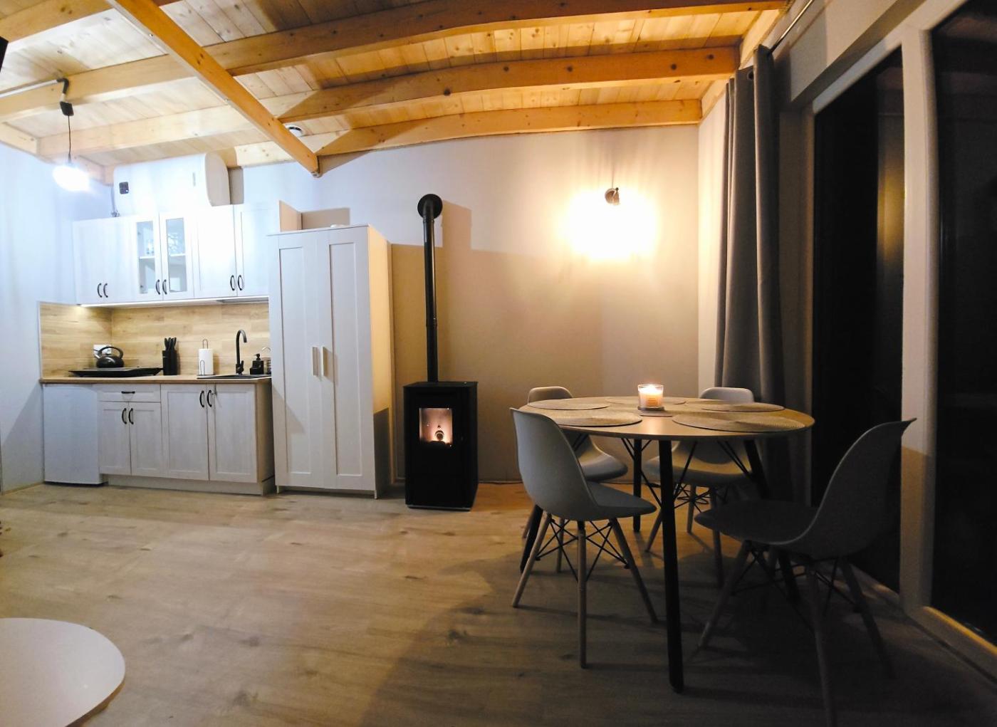 Domek. Boasting a private entrance, this chalet includes a kitchen, 1 bedroom and 1 bathroom with a shower and a hairdryer. Guests will find a stovetop, a refrigerator and kitchenware in the kitchen. The chalet also features a barbecue. This chalet has a dining area, a wardrobe, a flat-screen TV and a terrace. The unit has 2 beds. Domek - 3 osobowy. Powierzchnia pokoju ok.: 21 mkw.