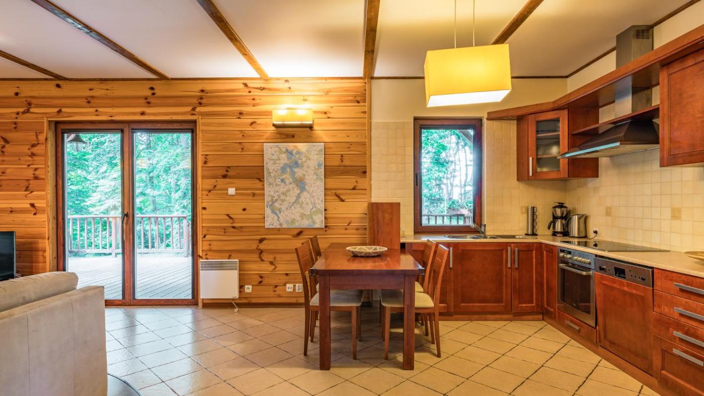 Domek z 3 sypialniami. Featuring a private entrance, this chalet comprises 1 living room, 3 separate bedrooms and 2 bathrooms with a shower. The well-equipped kitchenette features a stovetop, a refrigerator and an electric kettle. Boasting a terrace with lake views, this chalet also provides a seating area and a flat-screen TV. The unit offers 6 beds. Domek - 8 osobowy. Powierzchnia pokoju ok.: 60 mkw. ;