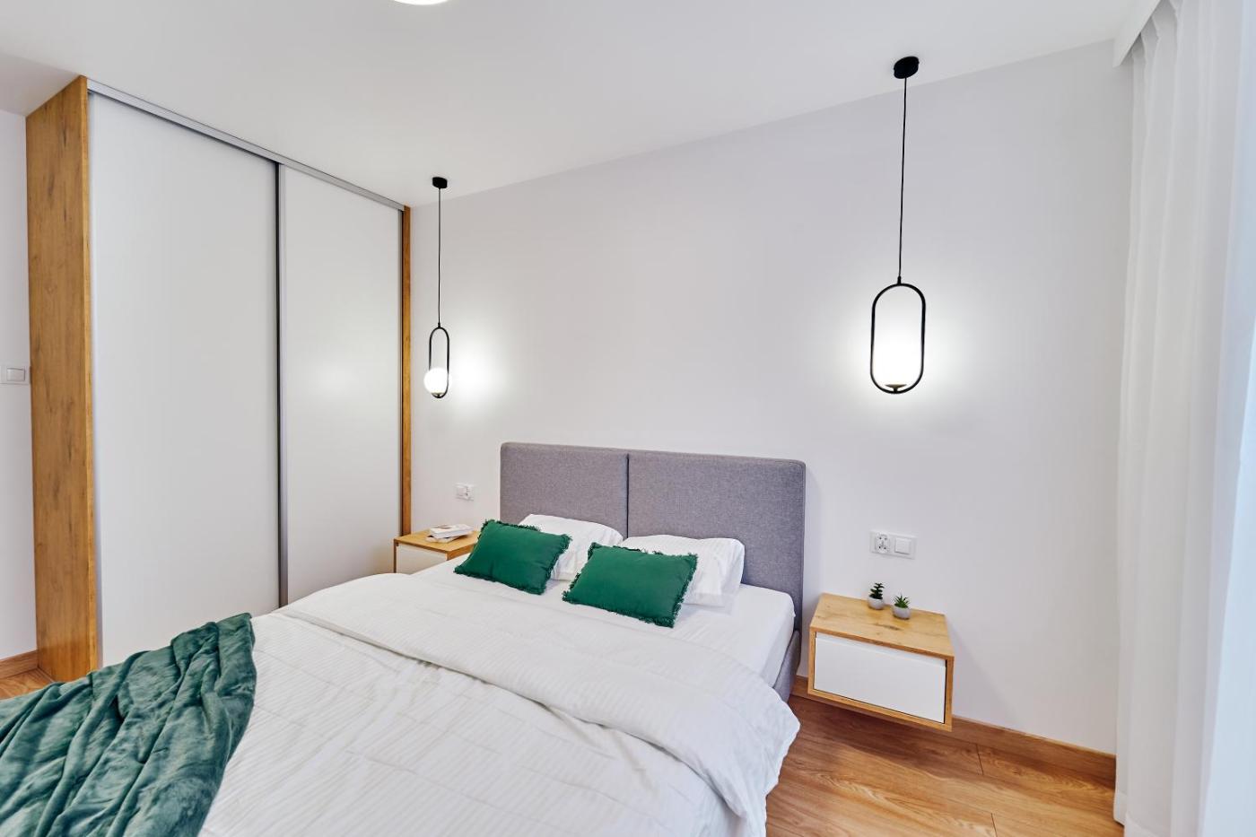 Oferta apartamentu obejmuje sypialnię (1), salon, aneks kuchenny z pełnym wyposażeniem, w tym lodówką i ekspresem do kawy, a także łazienkę (1) z prysznicem oraz suszarką do włosów. W apartamencie zapewniono ręczniki i pościel.