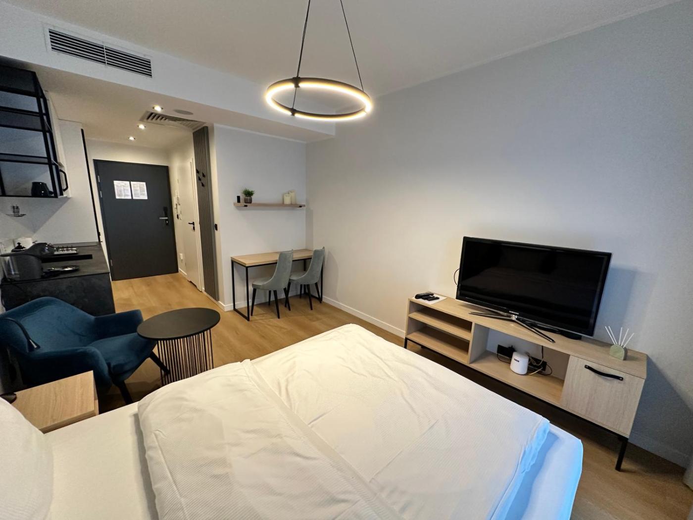 Apartament Premium z 1 sypialnią. Boasting a private entrance, this apartment also comes with 1 bedroom, a seating area and 1 bathroom with a shower and a hairdryer. This apartment has a tea and coffee maker, heating and a flat-screen TV with streaming services. The unit has 1 bed. Apartament - 2 osobowy. Powierzchnia pokoju ok.: 22 mkw.