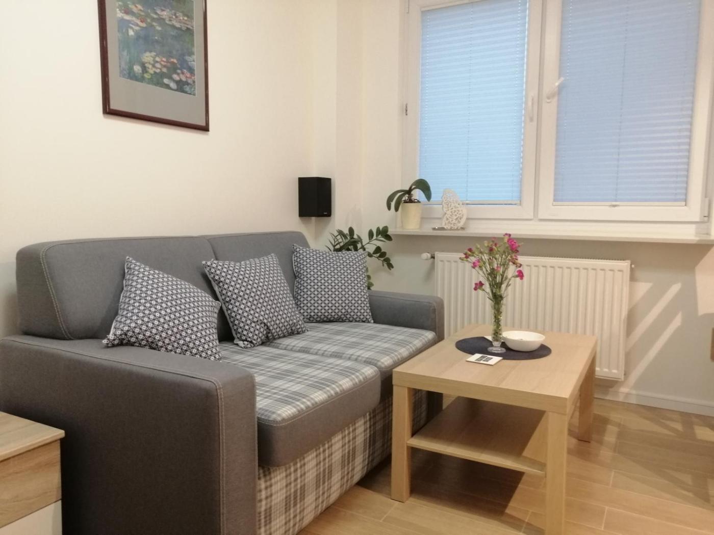 Apartament. Featuring a private entrance, this apartment comprises 1 living room, 1 separate bedroom and 1 bathroom with a walk-in shower and a hairdryer. Meals can be prepared in the kitchenette, which comes with a stovetop, a refrigerator, a dishwasher and kitchenware. The apartment provides a flat-screen TV with cable channels, a washing machine, soundproof walls, a seating area as well as city views. The unit offers 2 beds. Apartament - 4 osobowy. Powierzchnia pokoju ok.: 28 mkw.