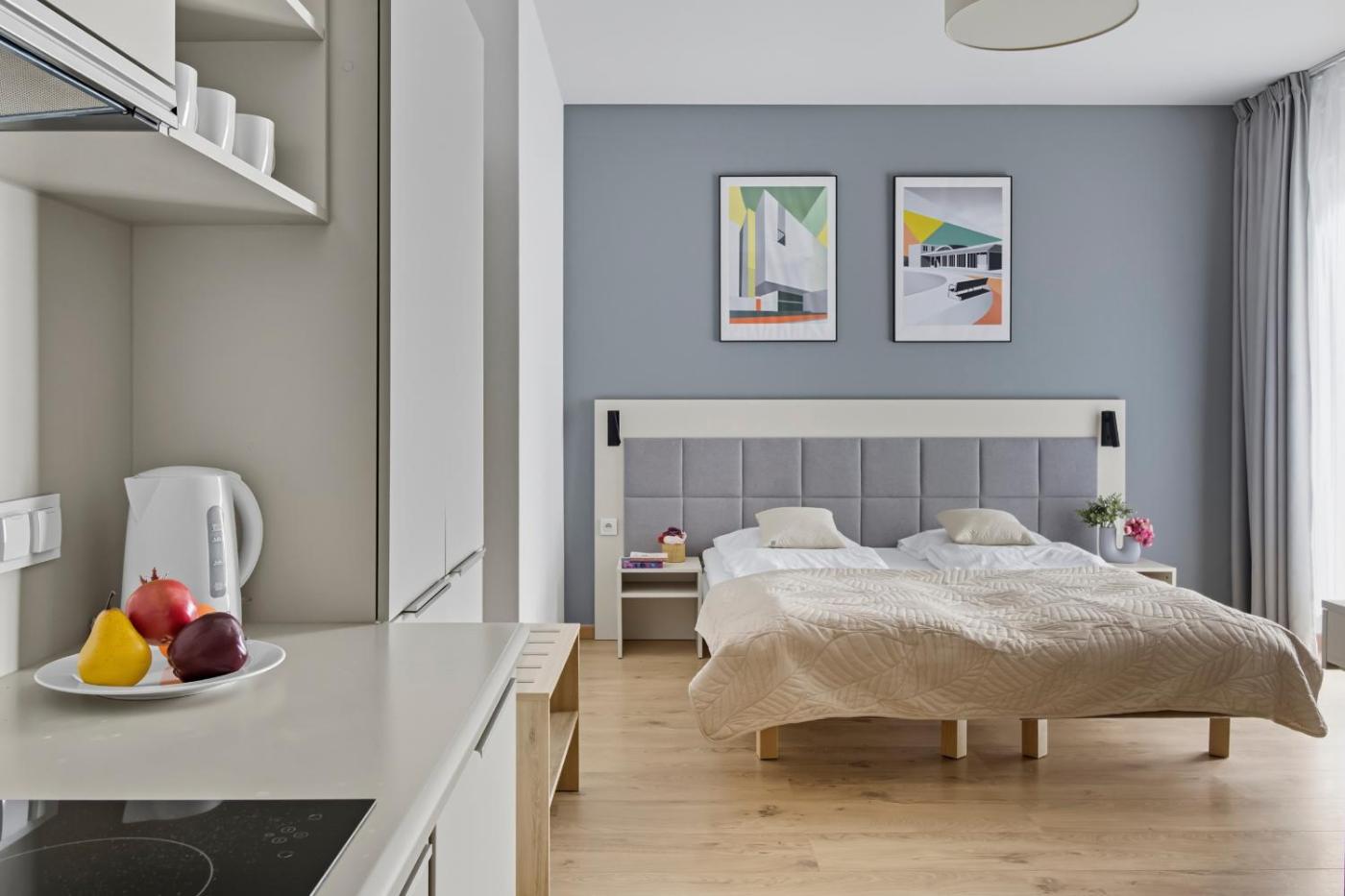 Studio typu Superior. The fully equipped kitchenette features a stovetop, a refrigerator and kitchenware. The studio offers a tea and coffee maker, parquet floors, a balcony with ancourtyard view as well as a private bathroom featuring a shower. The unit offers 1 bed. Studio - 2 osobowy. Powierzchnia pokoju ok.: 23 mkw. ;